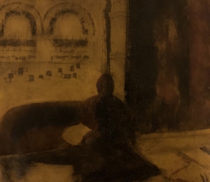 Who is the figure? where is she? why is she there? what are her thoughts as she sits in the dark interior, a solitary figure, waiting, thinking, tenseā¦.